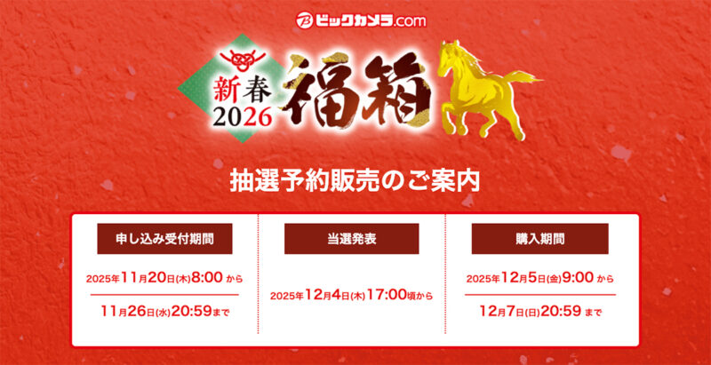 ビックカメラ.comにて、「2026年 新春福箱」抽選予約販売開始!スマホ福袋の中身予想も