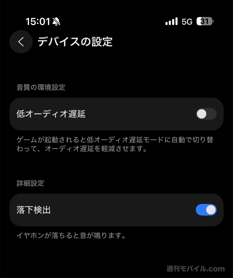 また、1万人以上の耳型データを活用して設計されたとのことで、装着していてもずれる感覚はあまりありません。ここは耳の形状にもよるところなので、合う、合わないはあるかと思いますが、個人的にはフィット感は抜群だと感じています。今回より、イヤホンの片側が落下してしまった際に、もう片方から音を出し、落下を知らせる機能も搭載されているため、本体をいつの間にか失くしてしまう心配も提言されています。