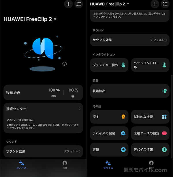 タッチ、ジェスチャーの設定に加え、装着検出機能の切り替え、デバイスを「探す」機能などが利用できるアプリとして、新たに「HUAWEI Audio Connect」を利用します。これまで配信されていたHUAWEI AI Lifeアプリから大幅に変更されているわけではないので、特別意識する必要はないでしょう。ただし、引き続きGoogle Playストアでは配信されておらず、Androidスマートフォンの場合は、ウェブから直接アプリをインストールする手間がかかります。