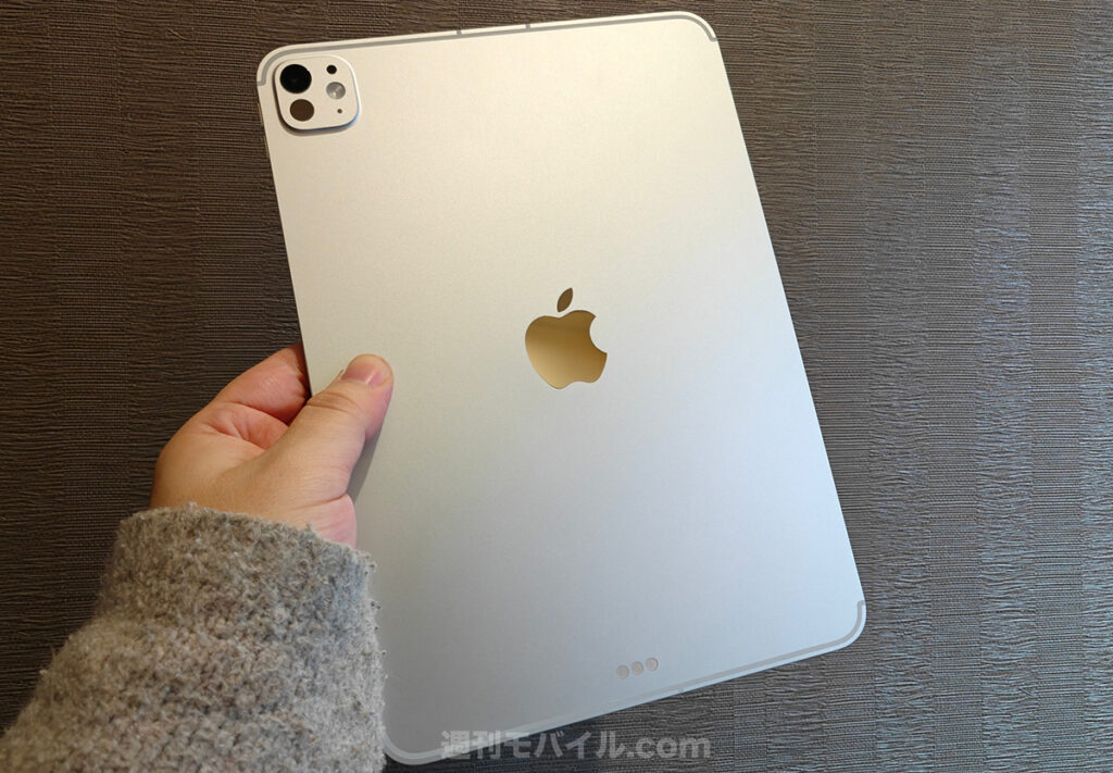 iPad ProをモバイルPCとして使いたい理由の1つが、優れた携帯性にあります。MacBookにはない11インチモデルであれば、本体サイズは177.5mm×249.7mm×5.3mm。13インチモデルに至っては、厚さ5.1mmとなり、非常に薄く、かさばらないのが魅力です。質量も、11インチのセルラーモデルは446g、13インチのセルラーモデルは582gと、MacBook Airと比べても半分以下に収められています。
