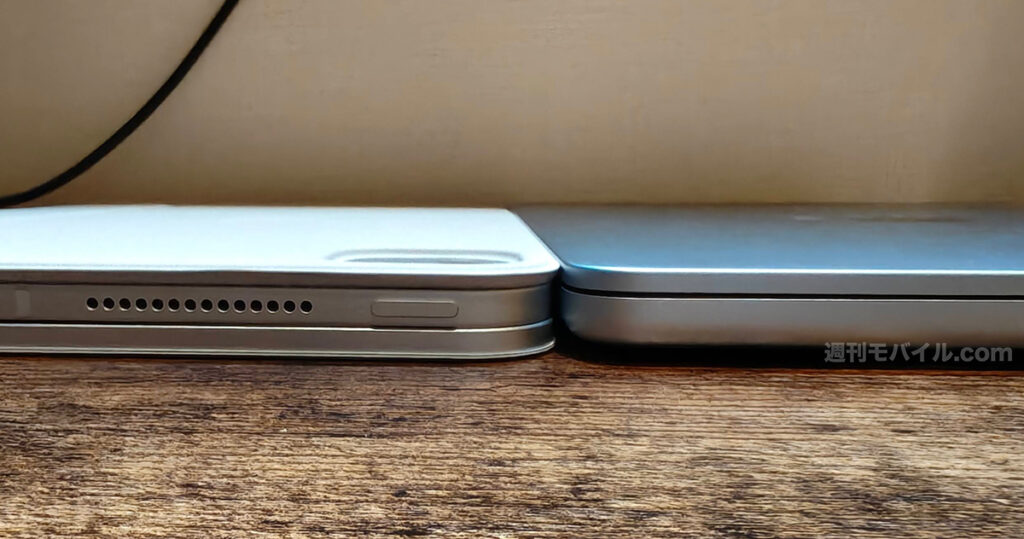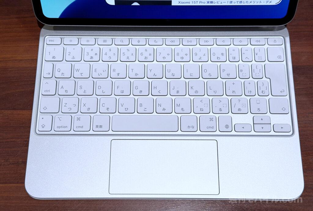 不満点は、タブレットのタイプカバーキーボードとしては、重すぎる点。iPad Pro(M5)と合わせると1kgを超えてしまい、質量や厚さはMacBook Airとさほど変わらなくなってしまいます。もちろん、Magic Keyboradをつけ外しできることこそ、iPad Pro(M5)の利点ではありますが、結局合わせて持ち歩くことを考えると、タブレットのメリットが1つ失われてしまいます。