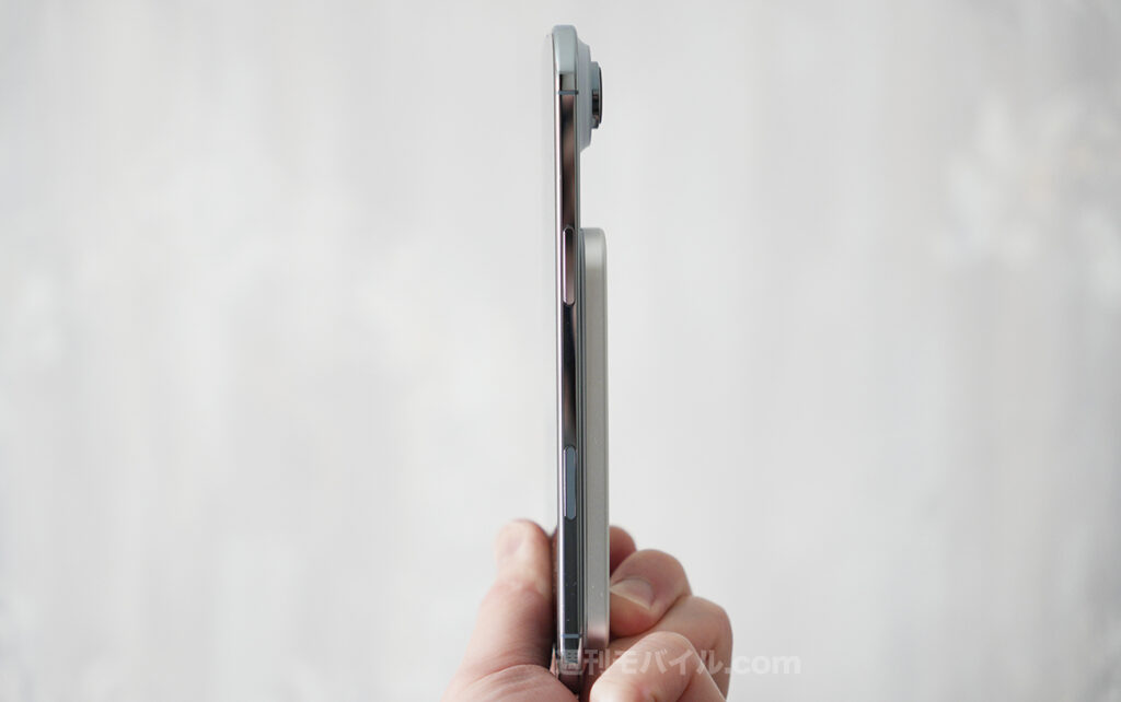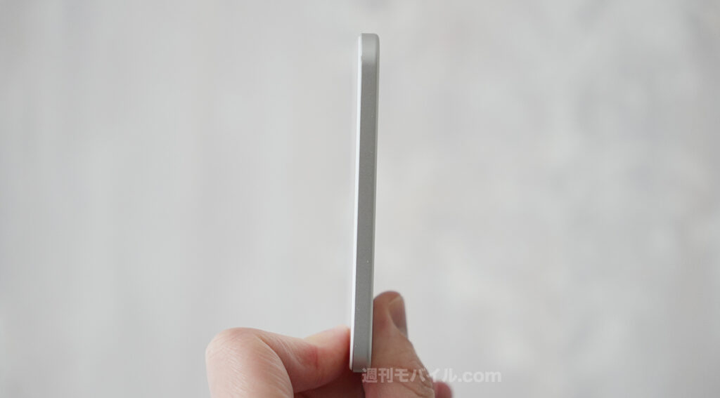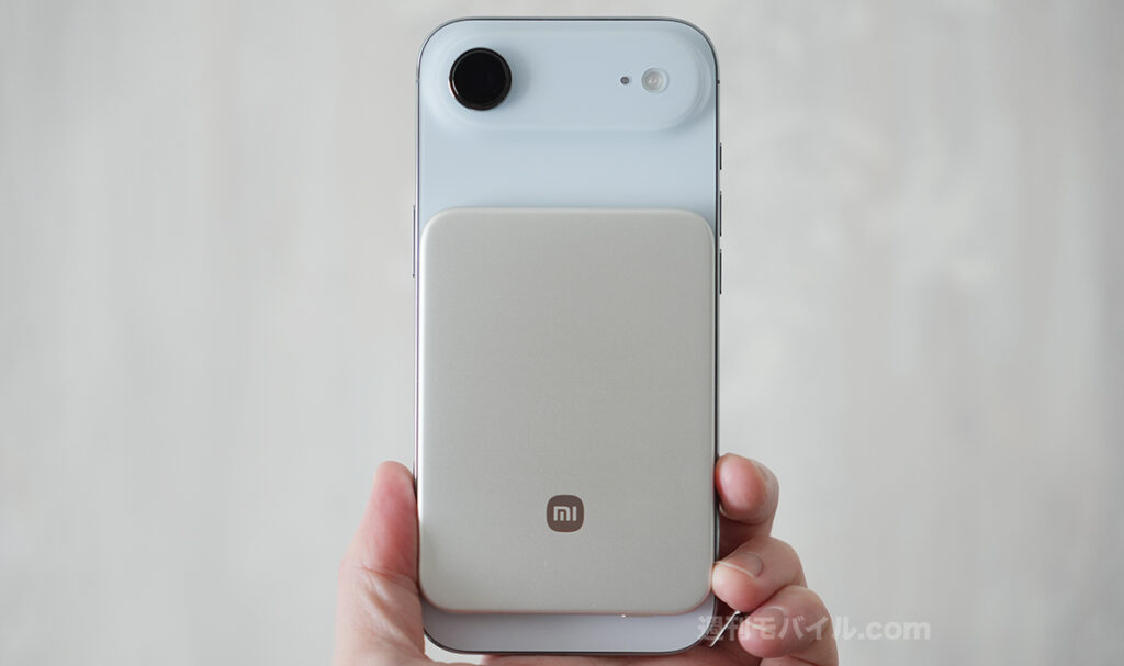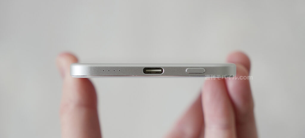 実際に手に取ってみると想像以上に軽く、薄い。そもそも、筆者は背面に貼り付け式の薄型モバイルバッテリーをこれまで手に取ったことがなかったのも相まって、え?これめっちゃ良くない?となりました。