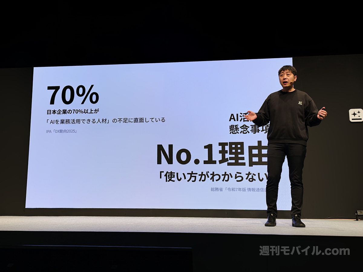 Genspark SEOのエリック・ジン氏によると、「日本市場はアメリカ、韓国と並ぶトップ3の市場」と位置付けられているとのこと。調査により、日本企業の70%以上がAIを使いこなす人材不足に直面していることがわかったため、AIを学ぶ必要はなく、簡単な支持を入力するだけで使えるGensparkとの相性がいいと考えているようです。