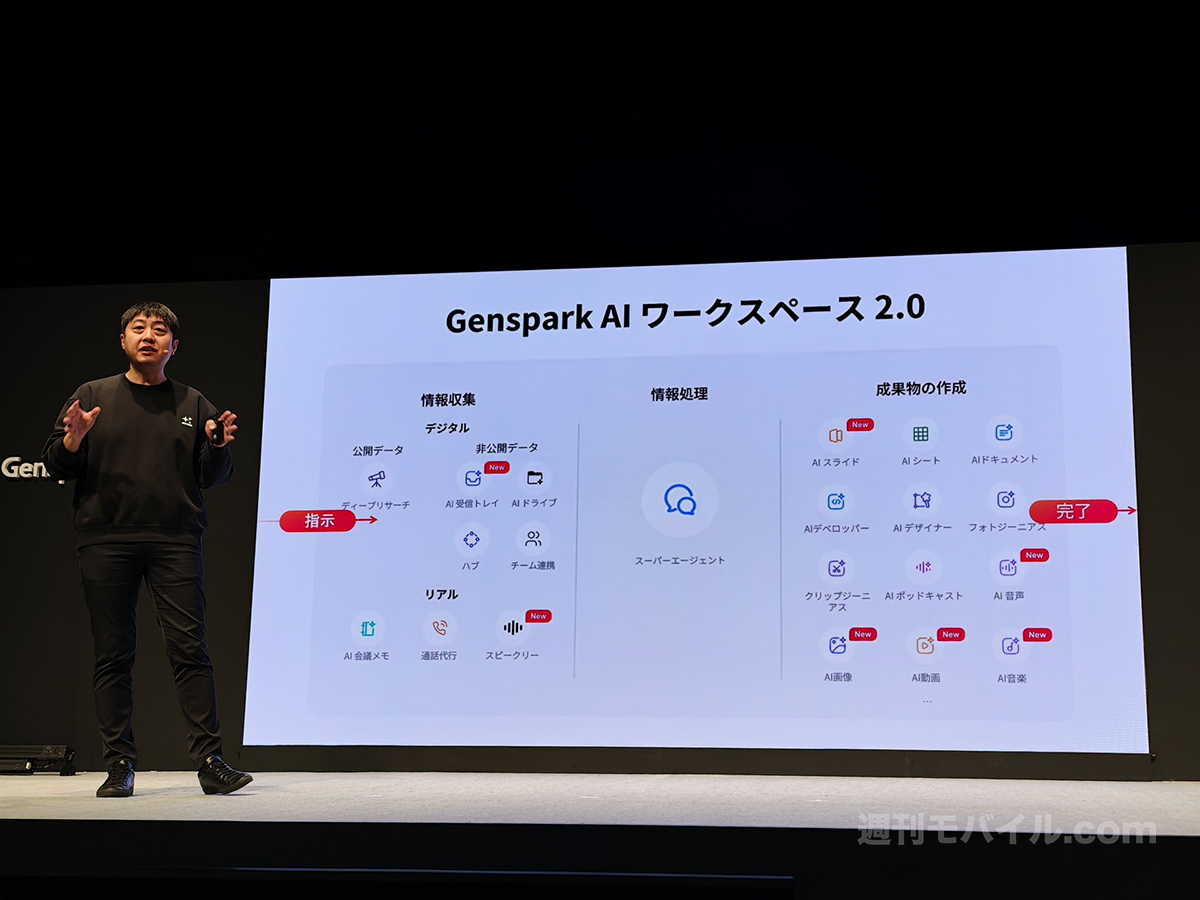 シリコンバレー発のAIスタートアップGenspark(ジェンスパーク)が本日、日本法人の設立と日本市場への本格参入を発表した。同時に、音声入力やカスタムワークフロー構築機能を備えた最新版「AI Workspace 2.0」をリリースし、日本企業の業務効率化に向けた取り組みを強化する。