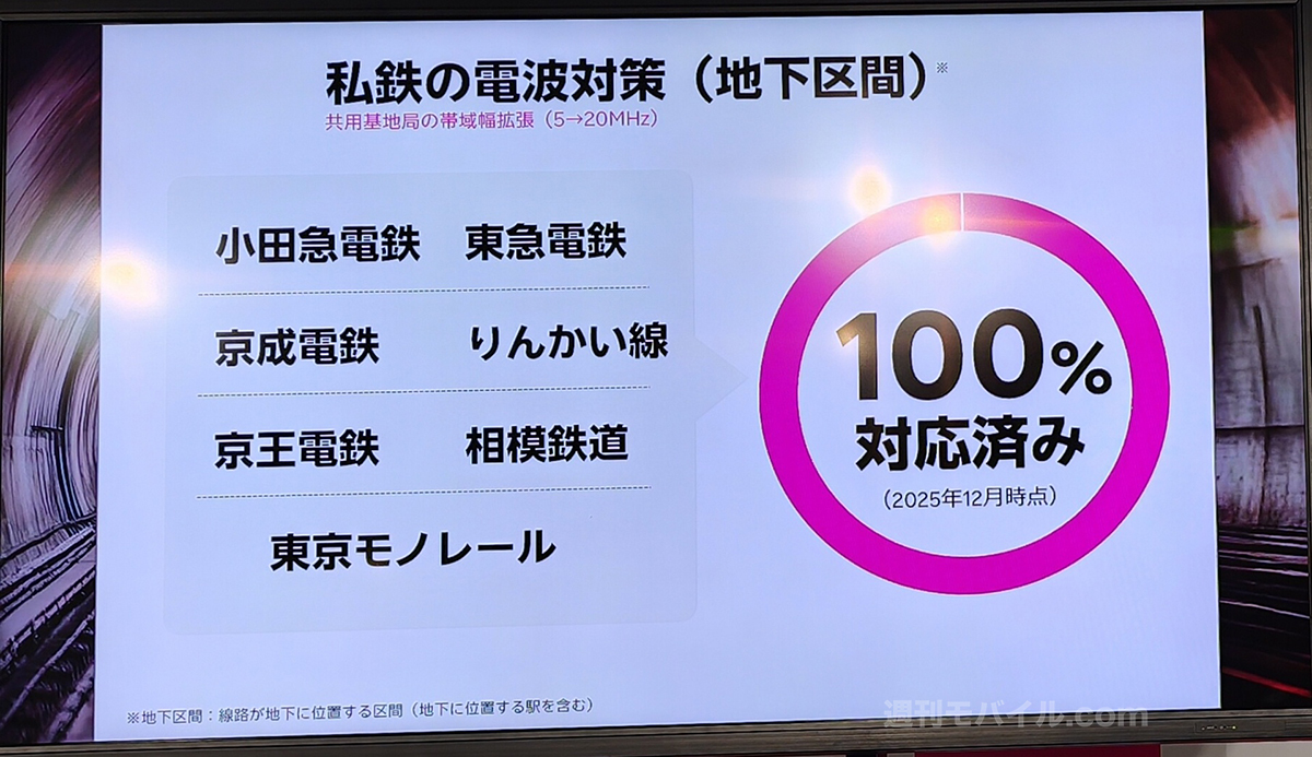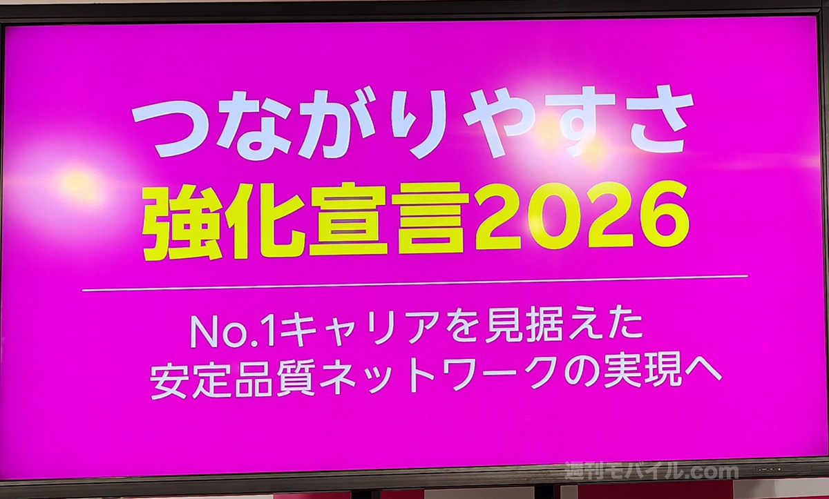 記者説明会では、ネットワークの改善状況や今後の計画についても公表されました。新たに「つながりやすさ強化宣言2026」と題し、地下鉄や山手線、大規模集客施設での対策について語られています。