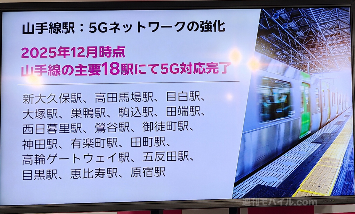都内私鉄の地下路線においても工事が進んでおり、2025年12月時点で対応済みとのことです。山手線での対策は、2025年12月時点で主要18駅における5G対応が完了しています。