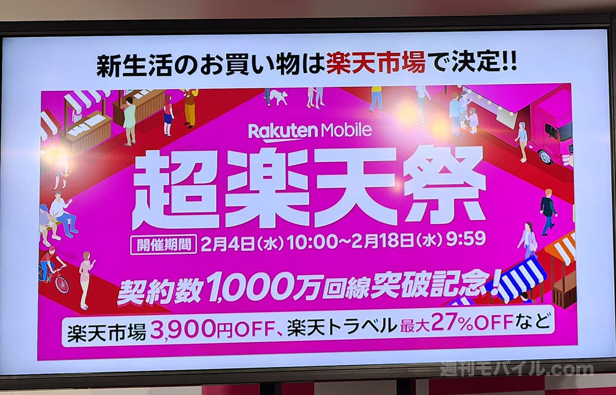 楽天モバイルと言えば、2025年12月に契約数1000万回線を突破したばかり。これを祝し、2月4日10時から2月18日9時59分までの間、「超楽天祭」と題したキャンペーンを開催します。