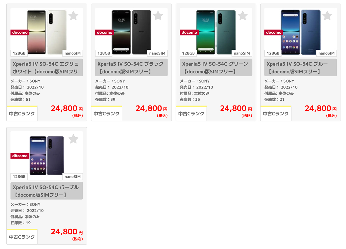 中古品「Xperia 5 IV SO-54C」の販売価格について