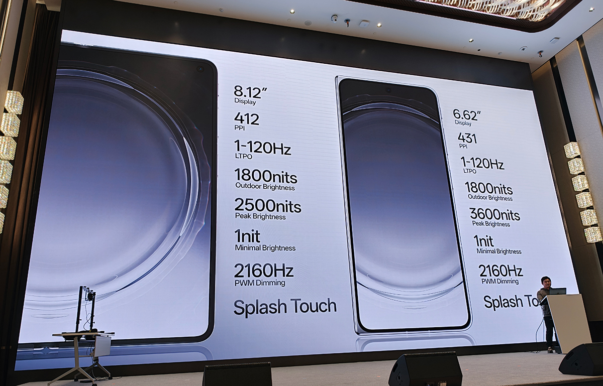 「OPPO Find N6」のメインディスプレイ(内側)は、約8.12インチ有機ELディスプレイ×リフレッシュレート1-120Hz駆動、サブディスプレイ(外側)は6.62インチ×リフレッシュレート1-120Hz駆動です。