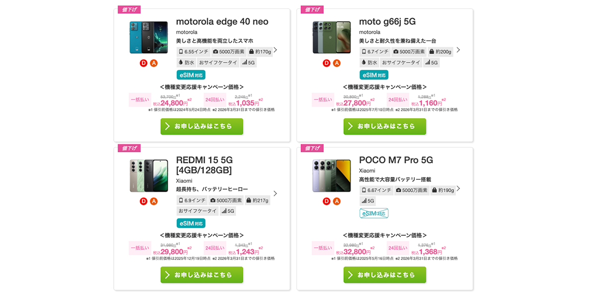 | moto g66j 5G | 3万800円 | 2万7800円 |