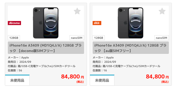 イオシスにて販売されている未使用品「iPhone 16e」の詳細を以下にまとめました。